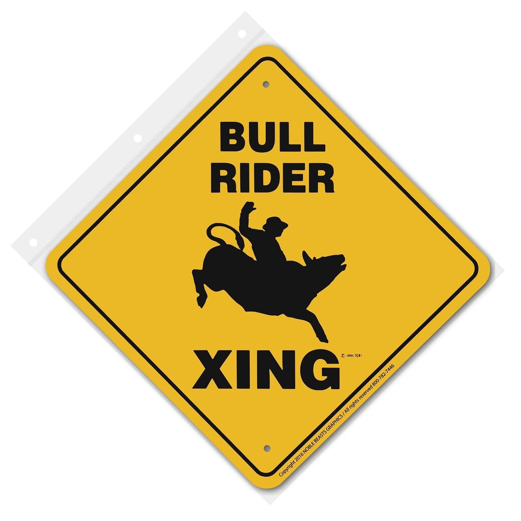 Help keep animals safe and people aware with Noble Beasts Graphics 12 inch x 12 inch Bull Rider Xing aluminum sign. Ideal for both outdoor and indoor use, it’s designed to be durable, weather-resistant, and long-lasting.