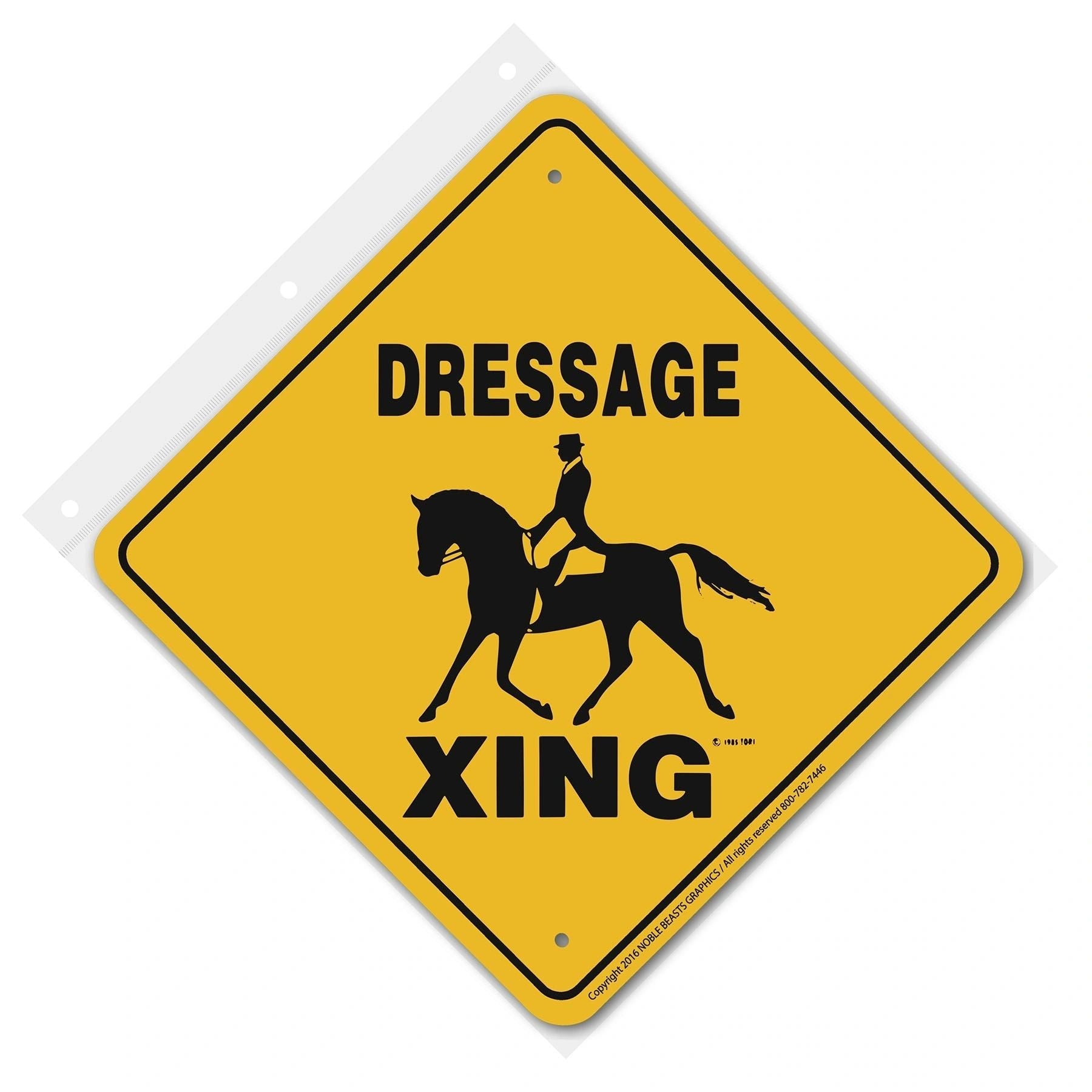 Help keep animals safe and people aware with Noble Beasts Graphics 12 inch x 12 inch Dressage Xing aluminum sign. Ideal for both outdoor and indoor use, it’s designed to be durable, weather-resistant, and long-lasting.