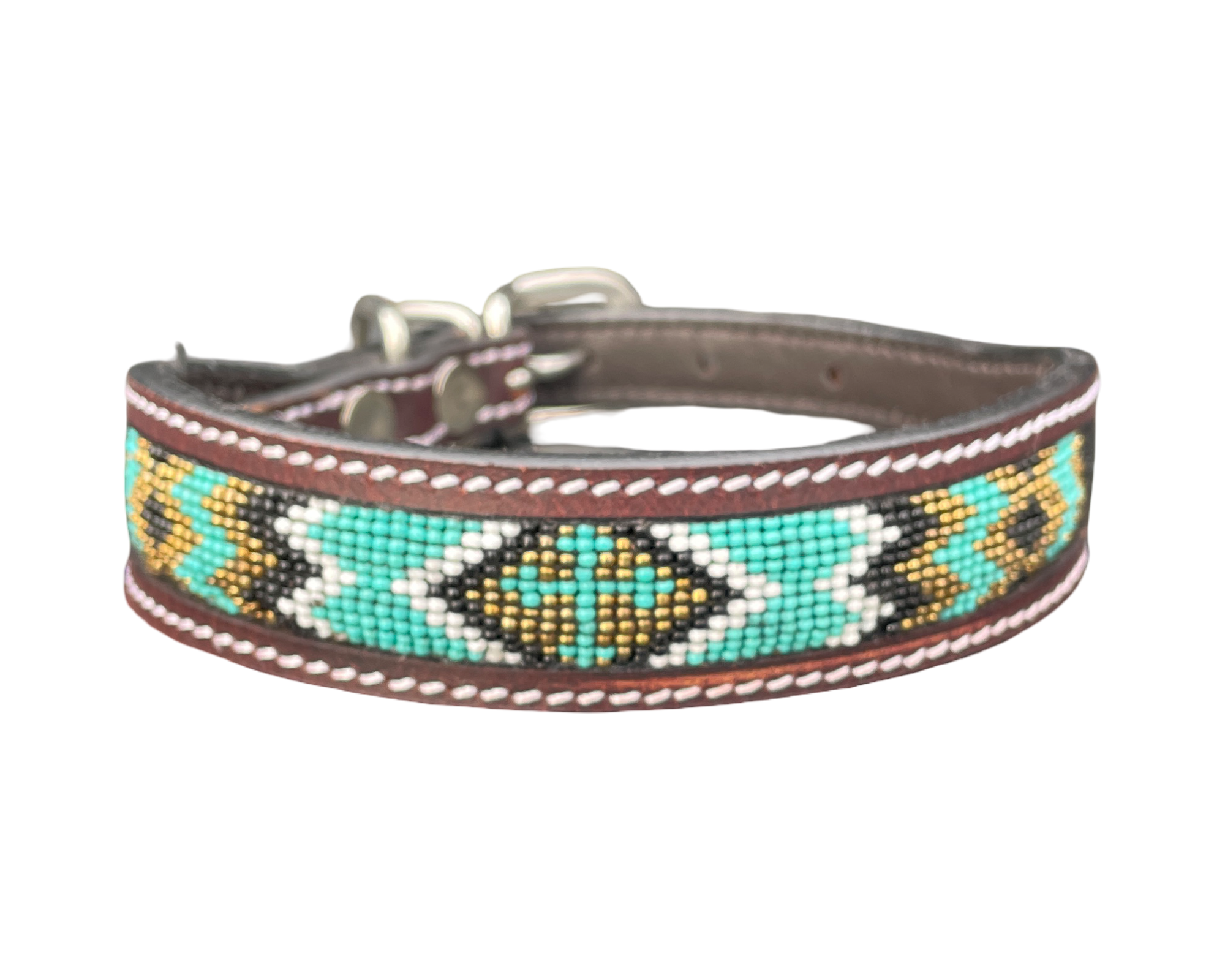 Epic Padded Leather Dog Collar with Beaded Design #K