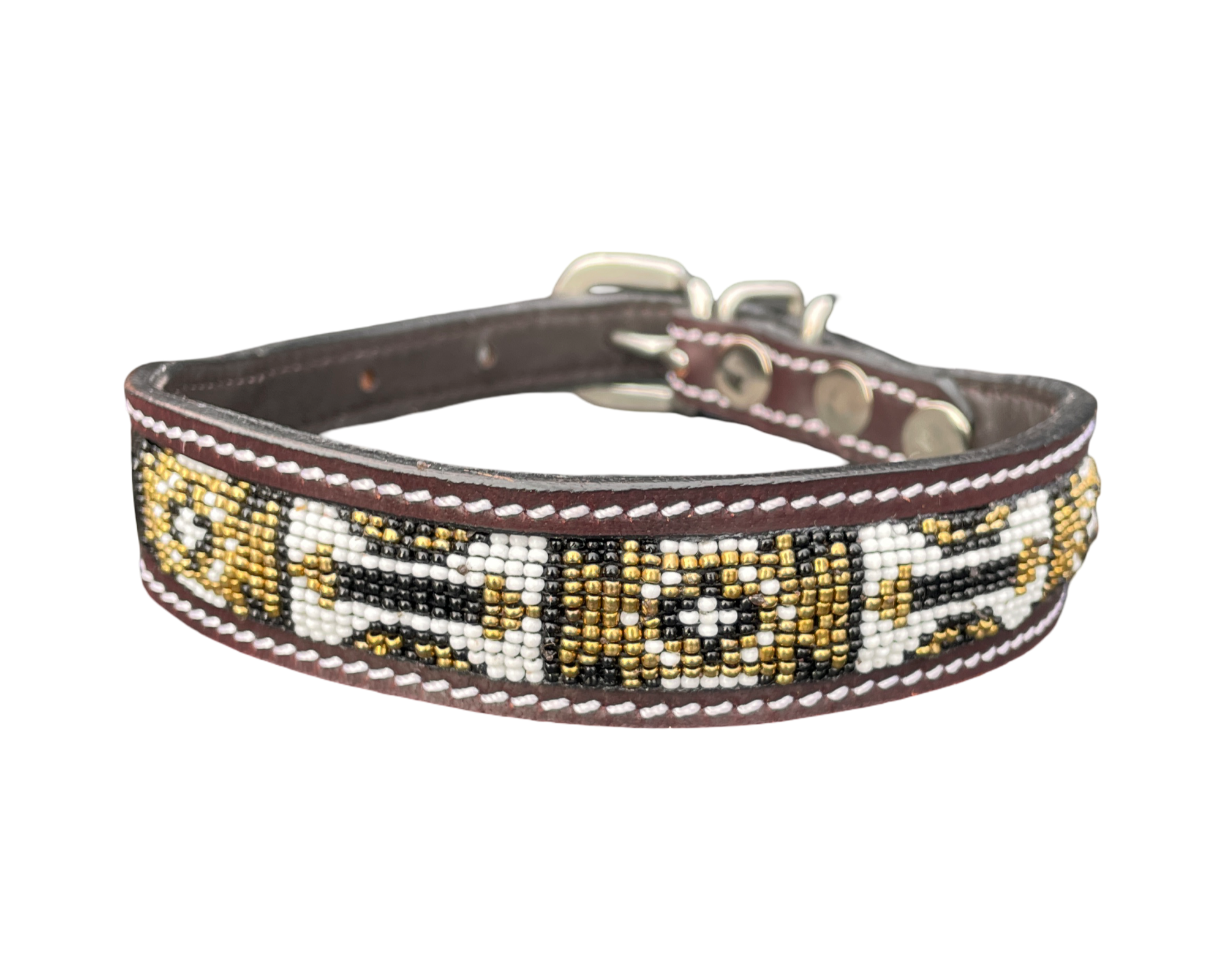 Treat your canine companion to handcrafted luxury with our Epic Padded Leather Collar. Featuring intricate beadwork in a striking geometric pattern, this collar combines artisan craftsmanship with everyday durability.