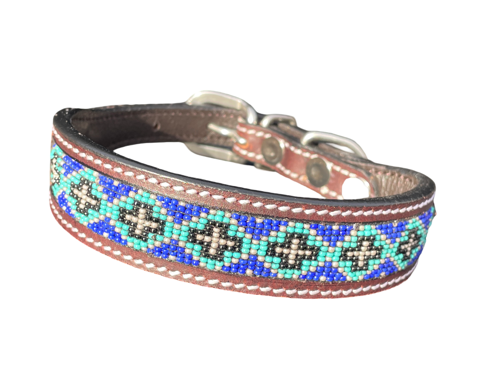 Treat your canine companion to handcrafted luxury with our Epic Padded Leather Collar. Featuring intricate beadwork in a striking geometric pattern, this collar combines artisan craftsmanship with everyday durability.