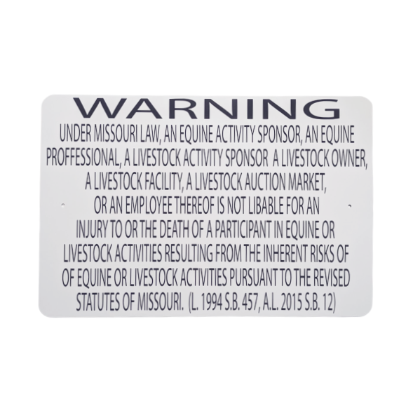 Equine Liability Signs for most States. Ideal for both outdoor and indoor use, it’s designed to be durable, weather-resistant, and long-lasting.