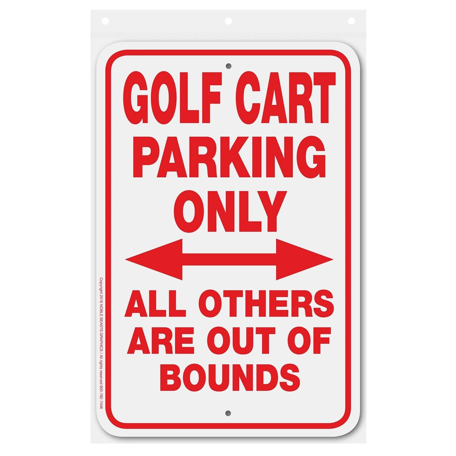 Keep people informed and aware with Noble Beasts Graphics 12 inch x 18 inch Golf Cart Parking Only aluminum sign. Ideal for both outdoor and indoor use, it’s designed to be durable, weather-resistant, and long-lasting.