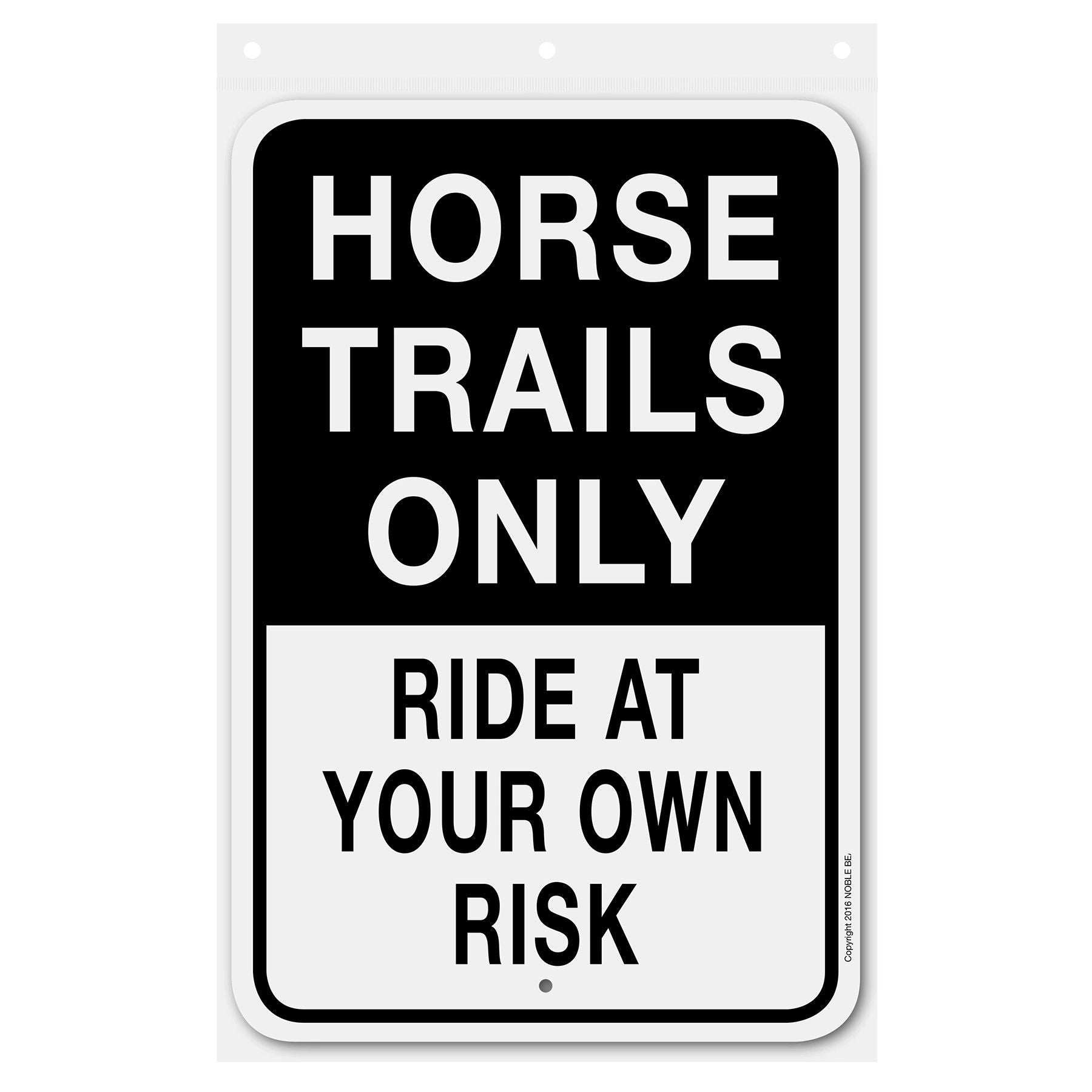 Keep people informed and aware with Noble Beasts Graphics 18 inch x 12 inch Horse Trails Only Here aluminum sign. Ideal for both outdoor and indoor use, it’s designed to be durable, weather-resistant, and long-lasting.