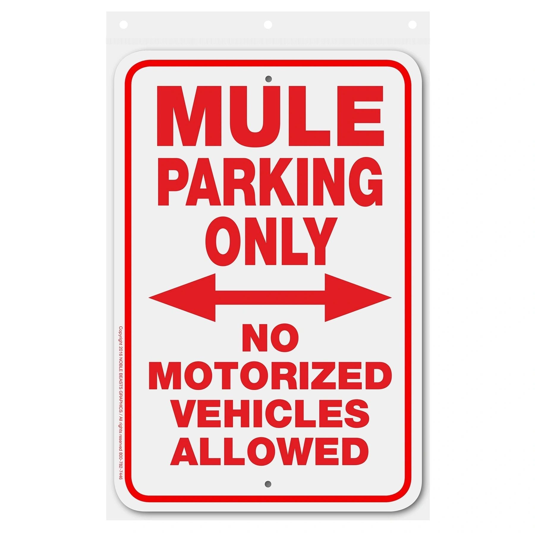 Keep people informed and aware with Noble Beasts Graphics 12 inch x 18 inch Mule Parking Only aluminum sign. Ideal for both outdoor and indoor use, it’s designed to be durable, weather-resistant, and long-lasting.